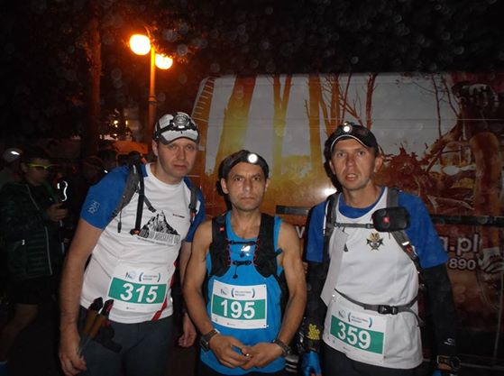 W piątek rano o 9.20 ruszyliśmy razem z 4 kolegami do Krynicy . Pomysł kierowcy żeby nie jechać autostradami się nie sprawdził . W wyniku dwóch objazdów i jednego pomylenia drogi do Krynicy dotarliśmy przed 20.00 . Szybka wizyta w Biurze Zawodów i do hotelu bo przecież start w nocy o 3.00 . W hotelu szybka kolacja , spakowanie rzeczy na przepaki na 36,66 i 77 km trasy oraz plecaka na start i o 22.15 gaszę światło . Nastawiam budzik i zasypiam szybko . Nagle się budzę . Pierwsza myśl – zaspałem . Na zegarku 0.56 . Westchnienie ulgi . Jeszcze godzina snu . Pobudka o 1.45 . Jedna kawa , jedna bułka , ubieram się w strój startowy , zakładam plecak , czołówkę i o 2.15 wychodzę z hotelu skąd mam ok. 1 km do startu .