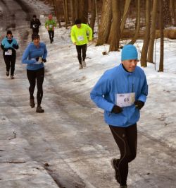 Pisałem ostatnio, że GP Mysłowic 21 II będzie moim pierwszym w tym roku sprawdzianem formy. Byłem przekonany, że niezależnie od warunków na trasie, zawsze będę miał z czym porównać osiągnięty wynik. Okazało się jednak, że nie doceniłem pogody i tego, co może ona zrobić z leśnymi ścieżkami, na których GP się odbywa. Już od tygodnia warunki do biegania w okolicznych lasach systematycznie się pogarszały, jednak w ten weekend zrobiła się prawdziwa masakra. Paradoksalnie, ale najwięcej złego zrobiło chyba wychodzące coraz śmielej wiosenne słoneczko. Nadtapia ono bowiem kolejne warstwy zalegającego na ścieżkach śniegu, które następnie w nocy zamarzają tworząc piękną lodową taflę. No i na takim to właśnie lodowisku odbywało się sobotnie GP Mysłowic. Na stromą górkę ciężko było wbiec, bo nogi uciekały do tyłu, z górki nie można się było rozpędzić, bo groziło to ciężkim kalectwem, a na płaskim też trzeba było uważać, aby nie wpaść nagle w niespodziewany poślizg. Dałem więc sobie spokój z jakimikolwiek sprawdzianami formy i spróbowałem jedynie w jednym kawałku dobiec do mety. Uważałem na siebie tym bardziej, że w poprzedni weekend na treningu grzmotnąłem o glebę dość konkretnie, tak że jeszcze mnie trochę boli biodro i bark. Tym razem jednak na szczęście udało się bieg ukończyć bez wywrotki, tylko z kilkoma piruetami po drodze, i to uważam za swój największy sukces.
