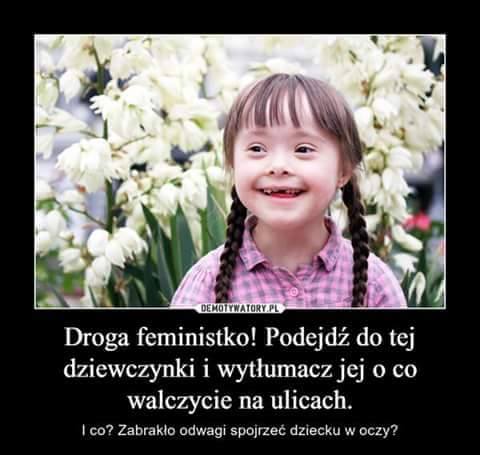 Przede wszystkim zaś walczymy o prawo do pomocy - realnej pomocy wtedy, gdy zdecydujemy się urodzić chore dziecko - nasze i mężczyzny, który jest tego dziecka ojcem. I o to jeszcze walczymy, by ten mężczyzna, gdy rzeczywistość posiadania chorego dziecka go przerośnie, nie uciekł bezkarnie w siną dal migając się od płacenia alimentów na swoją "krew z krwi, kość z kości". O to, by takie śliczne i radosne dziewczynki, jak ta na zdjęciu, nie były li i jedynie sprawą matki, ale obojga rodziców.