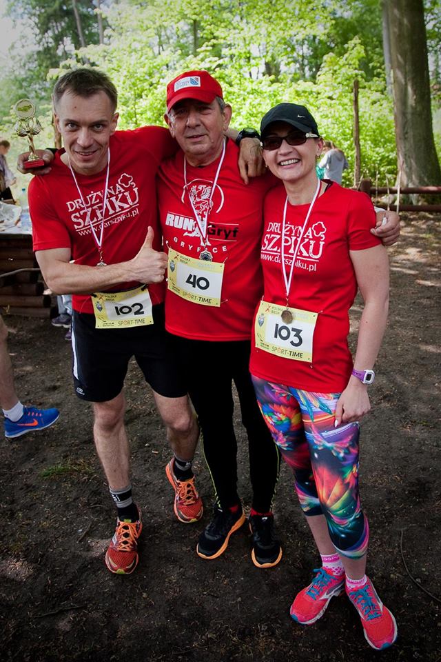 Coroczna akcja "Polska Biega", odbywająca się w połowie maja wydała się idealnym momentem aby ustalić punkt wyjścia do dalszych treningów. Dystans pięciu kilometrów, nawet jeżeli zacznę zbyt mocno, nie mógł być dla mnie zabójczy. Dodatkowo była to fajna okazja żeby sprawdzić czy nowe koszulki Drużyny Szpiku nadają się do biegania w tempie nieco żwawszym niż treningowe. Paulina też ma szpikową koszulkę więc będziemy wyglądać jak para ;-)