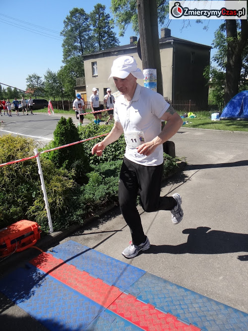 Przy dopingu wielu kibiców ruszyliśmy z linii startu. Tuż po starcie lekki podbieg i suniemy do przodu. Przebiegając obok miejscowego kościoła, z humorem ksiądz proboszcz każdego z nas kropi wodą święconą. I tak sobie biegniemy, a wśród nas wiele dzieci.