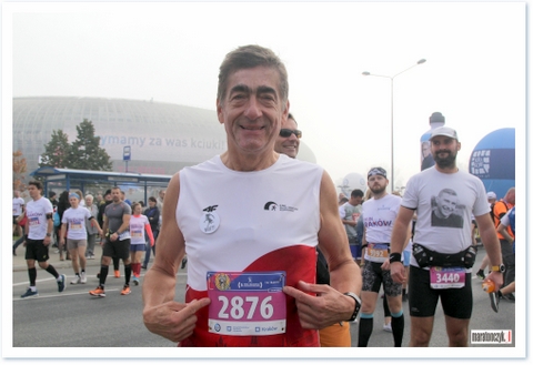 Startujemy równo o 11:00 obok Tauron Ateny, Ja w strefie 1:45-2:00. Jestem zupełnie niewybiegany ale chciałbym złamać 2:00. Trasa jest prosta, przebiegamy mostem na prawą stronę Wisły biegniemy prosto w stronę Wawelu,znów przebiegamy mostem w stronę Błoni tam mała agrafka, zbieg do Wisły i znów podbieg do Rynku. Zbieg do bulwarów wiślanych i wzdłuż Wisły z powrotem do Tauron Ateny . W sumie trasa dość trudna technicznie z uwagi na ciągłe podbiegi i zbiegi oraz część nawierzchni z kostki kamiennej. Bufety co około 2,5 km dobrze zaopatrzone: woda, izotonik, cukier, czekolada, banany , rodzynki. Do półmetka biegnie się dobrze w czasie 52 min. później muszę trochę odpuścić, zmęczenie plus upał. Finisz na Tauron Arenie w półmroku przy migających światłach i głośnej muzyce. w sumie bardzo energetyczny. Finiszuję z czasem 1:55:27, na miejscu 3583/8746 . Plan minimum wykonany, nawet nieco lepiej ale widzę, że z formą kiepsko. Zobaczymy co będzie dalej. Na razie cieszę się wymęczoną Koroną Półmaratonów.
