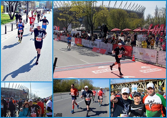 Co rusz to jakieś dolegliwości, nie nastrajało do optymizmu. Jednak coś mnie ciągnie do maratonu jak „ćpuna do marychy” :0), a jeśli już mam pobiec ten królewski dystans to warto by było w końcu wyrównać rachunki z „Orlenem”. Niby się specjalnie nie szykowałem. Brak jakiegokolwiek planu treningowego, jak kiedyś kiedy uganiałem się za kolejnymi życiówkami, nie nastrajał do jakiegoś szalonego optymizmu. Jednak gdzieś głęboko w głowie cały czas słyszę „Paweł czas na trójkę z przodu”. No tak myśleć fajnie, ale wykonać hym… Biegam sporo i regularnie, ale wolno, więc ciężko wymagać „cudów”, nawet byłem gotowy na pracę u trenera, lecz coś mi zawsze przeszkodziło w rozpoczęciu konkretnego treningu. Postanowiłem, że jednak nie ma się na co oglądać i sam wprowadziłem do mojego truchtania jeden dzień siły biegowej znanej mi z lat kiedy to się „szalało” :0). Skipy, przyśpieszenia, rozciąganie i „ciut” dodatkowych ćwiczeń muszą mi pomóc chociaż poprawić marniutki wynik z zeszłego roku. Motywacji mi nie brakowało, bo już dawno nie byłem tak napalony na jakiś start, a do tego w Warszawie na targach miało być sporo osób z firmy w której pracuję, więc nie mogłem poprzestać na „minimaliźmie” :0). Przedstartowa sobota mija nam z Agą przyjemnie na spacerku po Starówce (niestety trochę chłodno), odbieramy pakiety, „ładuje” węglowodany i lulu. O poranku wita nas pięknie słoneczko (znowu mam farta do pogody, jak trzy tygodnie wcześniej w Krakowie). Jest wręcz idealna pogoda do biegania. Przed startem spotykamy się z Anetką i Marcinem na pamiątkowe foty, przybijamy piątki, oczywiście tradycyjne „kopy” od mojego Kwiatuszka na szczęście i zaczynamy zabaw . Nie biegniemy razem. Każdy udaje się do swojej strefy. Moja to 4.15- 4.30 Aga pyta kiedy ma mnie wypatrywać? hym... nie chcę obiecywać sobie za wiele więc mówię, że tak raczej między 4.10 – 4.20 lecz już w głowie mam to, że „tanio tu skóry nie sprzedam”. Albo pęknie czwórka albo... jęk i zgrzytanie zębami. Bieg zaczyna się w rytm muzyki marszowej więc dumnie „biego-marszuję” obok Agi słysząc „ i tak do mety !” :0). Pogoda rewelacja, to i biegnie się fajnie. Mijają kolejne km, kontroluję czas, jest lepiej niż myślałem. Fajnie, że właśnie niedawno czytałem biografię Jurka Skarżyńskiego gdzie opisuje wiele swoich biegów, bo staram się biec trochę taktycznie wykorzystując innych biegaczy do „zającowania”. Trzymam się zawsze jakiejś grupy nadającej tempo i podbiegam szybciej, jeżeli zostaję sam (w miarę możliwości oczywiście). Co 9km żel i woda, na przemian z izotonikami na każdym punkcie, a jest ich naprawdę sporo. Ok 10 km wyprzedzam „baloniki” na 4h, wiem, że nie mogę ich więcej przed sobą zobaczyć jeżeli chcę cieszyć się na mecie. Gdzieś na trasie Aga wyłapuje mnie z grupy biegaczy strzelając fotę, tak mija połówka czas 1.53. Banan na twarzy mi się pojawia, bo to czas lepszy niż na połówce na Marzannie trzy tygodnie wcześniej. Tonuje jednak emocje, bo maraton dopiero się zaczyna, ale cieszy równy rytm i brak oznak zmęczenia. Kawałek za 30 km organizator stwierdził, żeby nie było za łatwo, dowalimy podbieg. Oj trochę mi to dało w kość, na szczęście potem już tylko z górki do „zwycięstwa”. Tempo trochę siadło, lecz już wiedziałem, że jak tylko nie będę biegł powyżej 6min/km to spokojnie zrealizuję marzenie o trójce z przodu. Skłamałbym gdybym napisał, że to już było bieganie na luziku (trochę dało jednak mi popalić), lecz głowa była tak silna jak nigdy i nie było mowy o odpuszczaniu. Most, zakręt, już prawie meta, jeszcze tylko obiec Narodowy i już mogę krzyczeć w niebogłosy do mojego Skarbeczka JEEESS!!!!!! zrobiłem to znowu kochanie :0) 3.53.37 to nowa życiówka w „nowym życiu”. Do „poprzedniego” jeszcze trochę brakuje ale... kto to wie co życie przyniesie, chyba jeszcze warto się troszkę napocić :0) Wracam z Warszawy z podniesionym czołem i wpełni zadowolony z „Wyrównanego Rachunku” z OrlenWarsaw Marathon .