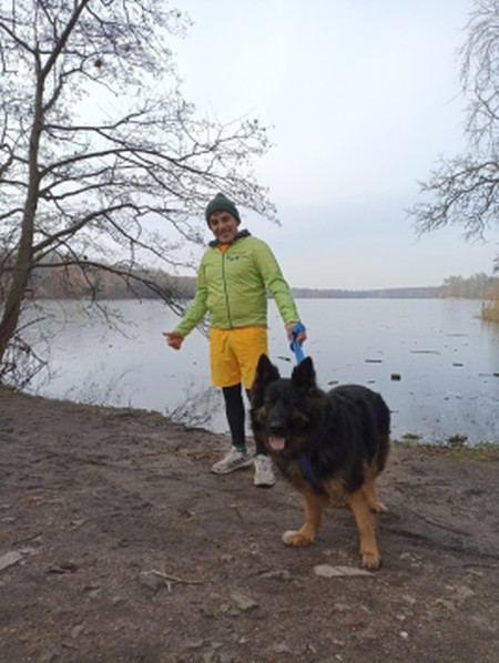 - na zdjęciu w miniony weekend z czarną Sympatią (Sansą) w drodze na leśną kąpiel :)