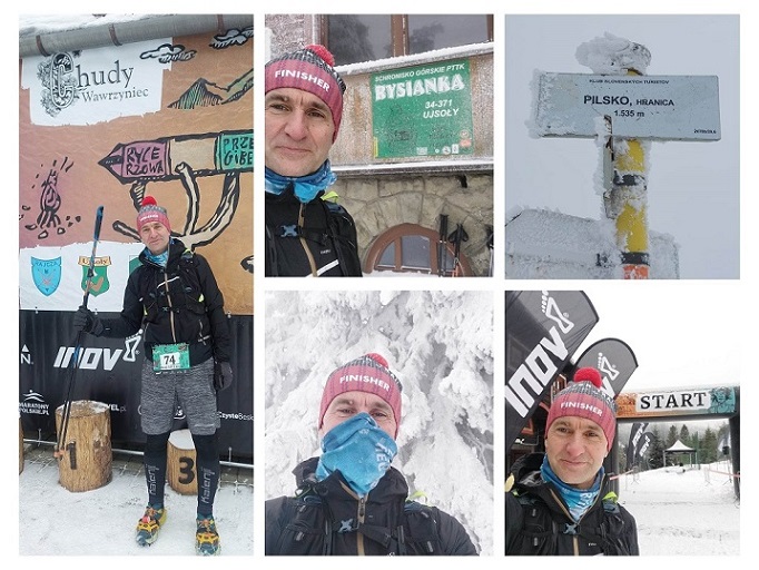 Druga edycja biegu, ale dopiero na niej mogliśmy zaliczyć całą planowaną trasę, właśnie z podejściem na Pilsko. Nie było to łatwe podejście, mróz trzymał coraz bardziej, wiał zimny wietrzyk i znowu pojawiła się mgła. Człowiek miał tylko jedno marzenie. Przybić piątkę z tabliczką „Granica Państwa” i jak najszybciej opuścić to miejsce. Czekając chwileczkę na Irka, przetruchtałem kilkadziesiąt metrów dalej do tabliczki z nazwą szczytu, bo inaczej chyba zamarzłbym w tym miejscu. Współczułem wolontariuszowi, który stojąc w tej okolicy wskazywał biegaczom trasę zbiegu z Pilska. Ten chłop musiał mieć odporność, wytrzymałość i kondycję 👏👍.