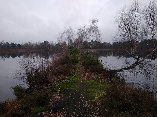 Kolejne dwa punkty bagienne były ustawione nad stawami. Piękne tam były przebiegi – wąskimi groblami i brzegami – tylko słońca nieco brakowało. Ale i tak były świetne widoczki, chyba jedne z najładniejszych na całej trasie. Zdjęcie we wpisie pochodzi właśnie stamtąd.