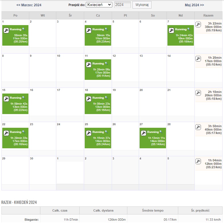 Ilo¶ć przebiegniętych kilometrów: 126km