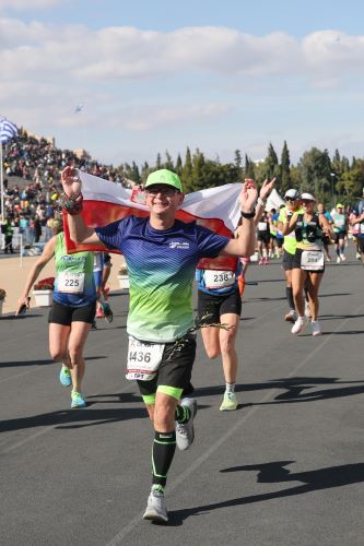 Ostatnie kilometry to podziwianie żywiołowych kibiców i bieg do mety, która znajdowała się na pięknym, starożytnym stadionie Kallimarmaro. Na koniec zostało mi wyjęcie flagi Polski i finiszowanie na stadionie wśród wśród wrzawy kibiców. Wypatrywałem Ani na trybunach, ale jej nie