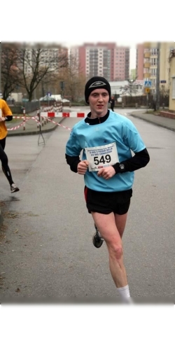 Z Dominiką biegnie mi się wyjątkowo dobrze. Akurat tempo właściwe. Mocne, ale powinienem dać radę. Zamieniamy się na prowadzeniu, raz prowadzi Dominika, a raz ja. Przebiegamy koło szkoły, gdzie kibice dopingują wszystkich na trasie. Biegniemy dalej, tym razem Dominika prowadzi. Zaczyna mieć znaczną przewagę nade mną. Nie wiem co się ze mną dzieje. Tak wcześnie? Kryzys? Nie mogę teraz odpuścić, trzeba przycisnąć. Doganiam Dominikę i kryzys przemija. Nie taki kryzys straszny... ale wróćmy do samego biegu.
