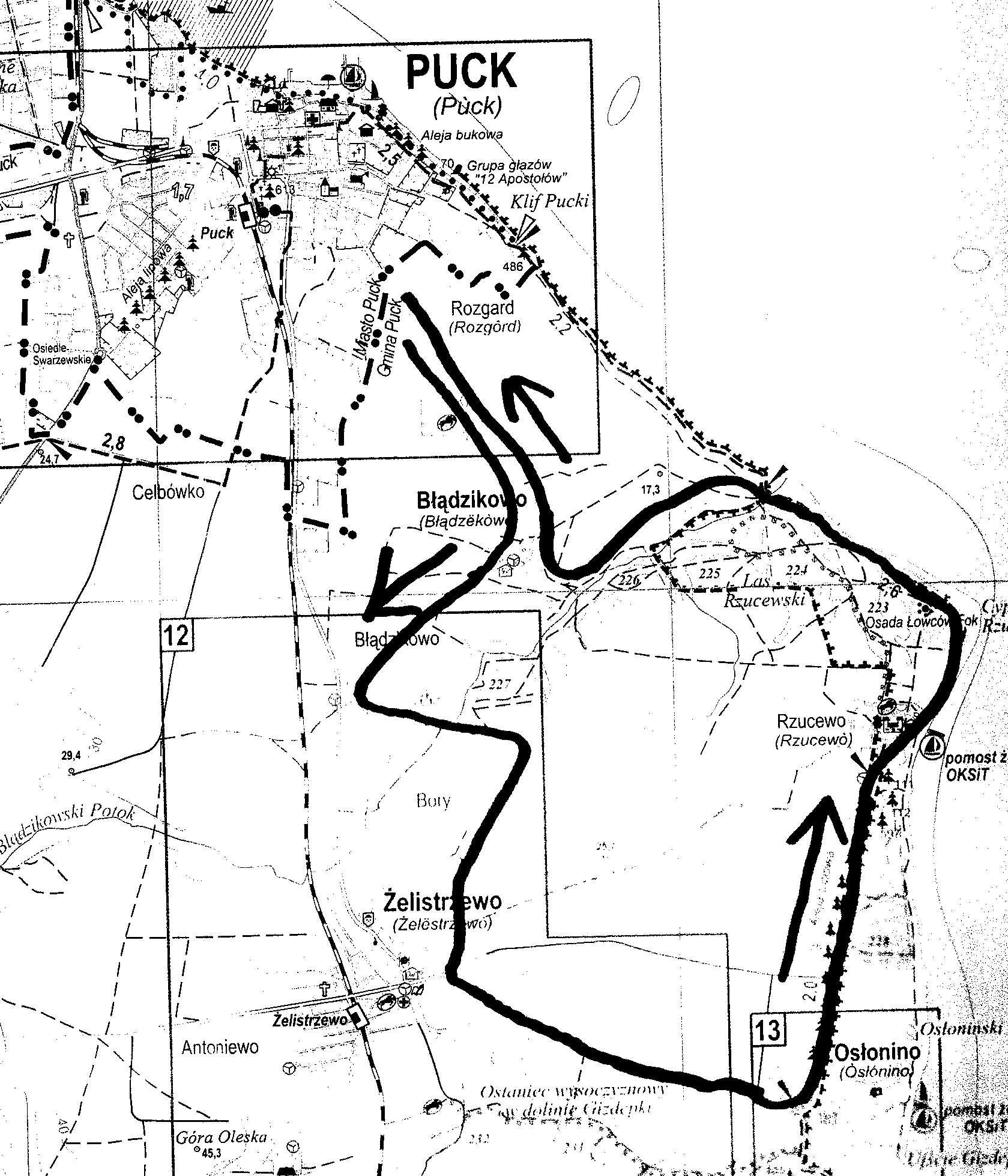 Trasa biegu: PUCK - BَDZIKOWO - ŻELISTRZEWO - OSŁONINO - RZUCEWO - BَDZIKOWO - PUCK