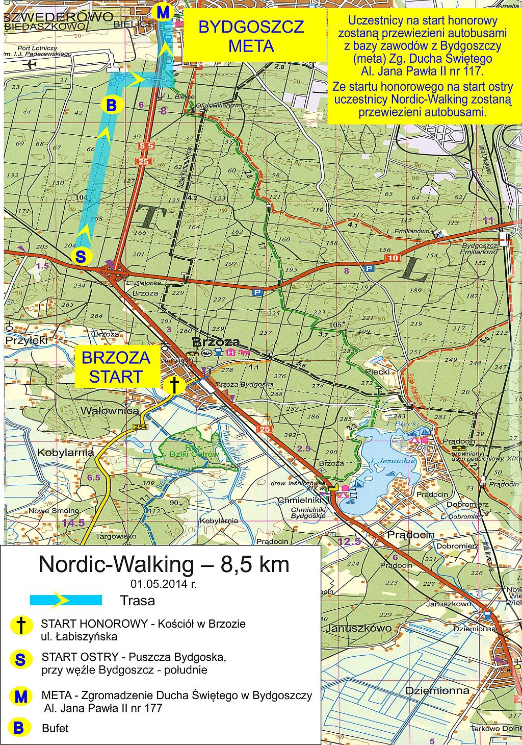 Trasa zawodów przebiega przez tereny le¶ne Puszczy Bydgoskiej z Brzozy do Bydgoszczy.