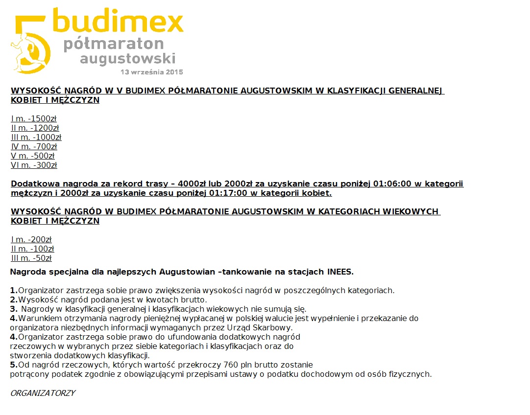 OPŁATY STARTOWE: V Półmaraton Augustowski