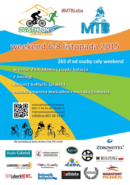 Duathlon na Wydmach i Maraton MTB to świetna okazja do spędzenia rodzinnego weekendu w Łebie w ośrodku Zdrowotel Łeba, który przygotował specjalną ofertę weekendową dla uczestników zawodów. Zapraszamy!