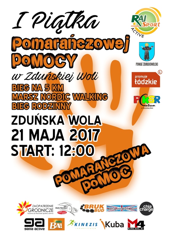 Dzięki staraniom p. Jolanty Zięby-Gzik członka Zarządu Województwa Łódzkiego i naszemu zaangażowaniu 21 maja pierwszy raz w historii na sportowej arenie Zduńskiej Woli zagości bieg pod nazwą „I Piątka Pomarańczowej Pomocy w Zduńskiej Woli”.