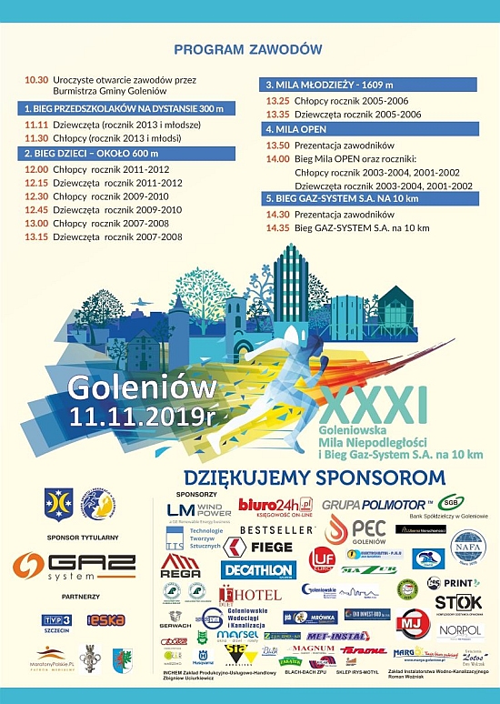 OPŁATY STARTOWE: XXXI Goleniowska Mila Niepodległo¶ci