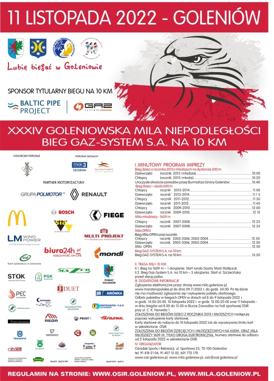 OPŁATY STARTOWE: XXXIV Goleniowska Mila Niepodległo¶ci - 10 km