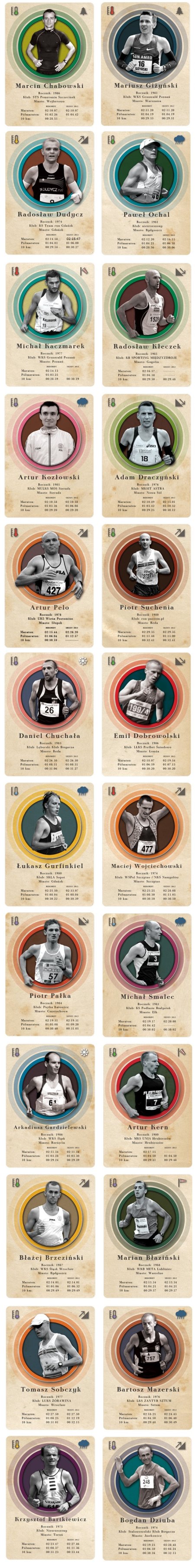 Spełniamy nasz± obietnicę! Poniżej zamieszczamy 24 "karty zawodników" - to za ich pomoc± będziecie rozgrywać kolejne rozdania i biegi. Każdy gracz na pocz±tku gry będzie losował swoj± pulę kart zawodników, którzy stan± się jego drużyn±. Tę drużynę prowadzić będziemy do zwycięstwa!
