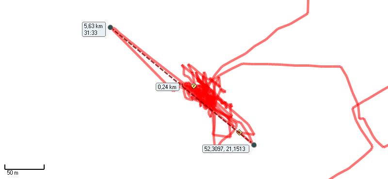Rozważania na temat długości trasy na podstawie wskazań GPS-a są bezowocne. Dane te obarczone są marginesem błędu, gdyż satelita lokalizuje sygnał z kilkumetrową dokładnością a dodatkowymi (i nie ostatnimi) czynnikami powiększającymi ten margines są wysokie budynki i drzewa oraz chmury a przede wszystkim mosty i tunele.