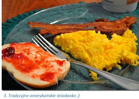 Zamówiliśmy tradycyjne amerykańskie śniadanie: jajecznica, bekon i tost. Do tego bez ograniczeń kawa "po amerykańsku" (fuj...) Panowie poprosili dodatkowo o miejscowe piwo (smakowo również bez żadnych rewelacji, więc później piliśmy raczej Budweisera i podobne). Śniadanko okazało się smaczne i obfite.