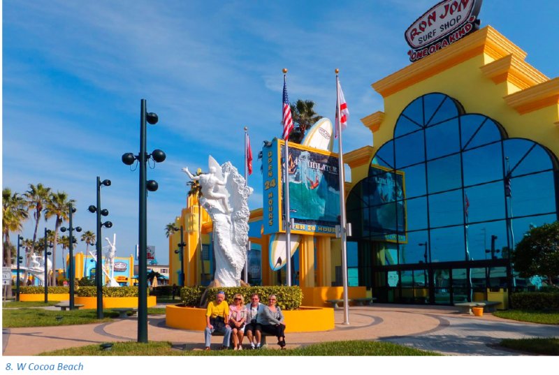Z domu do Cape Canaveral mamy niecałe 50 km, więc nie spieszymy się zbytnio. Po drodze zatrzymujemy się w Cocoa Beach - kultowej miejscowości nad oceanem, będącej mekką surferów, kitesurferów i wszystkich innych, uprawiających sporty wodne. Spacerujemy po plaży, pijemy ka-wę, kupujemy drobne upominki i jedziemy dalej.
