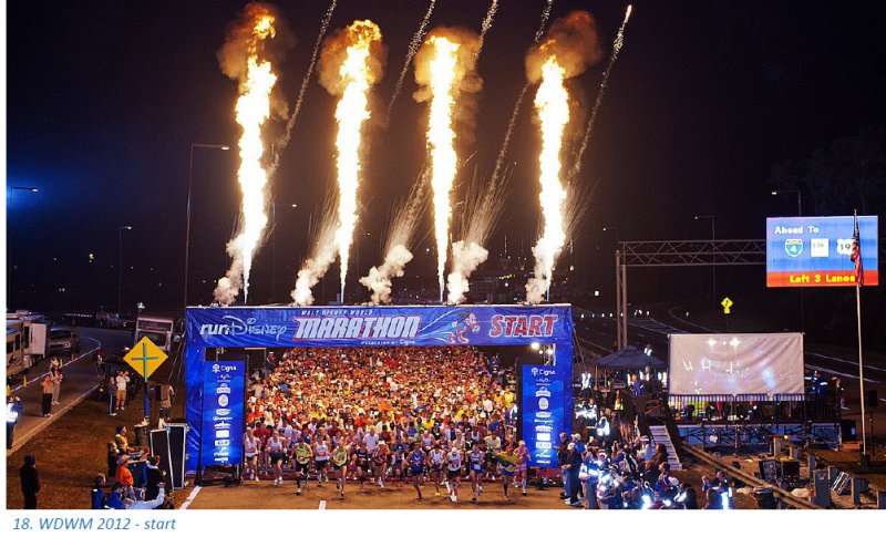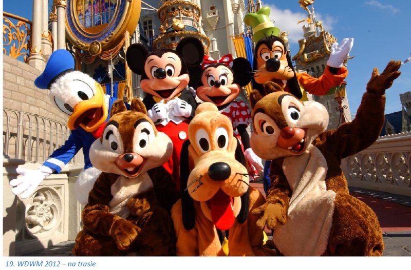 Cała trasa przebiega przez wszystkie ciekawe miejsca WDW, które wyglądają bajkowo i w nocy, i w dzień. Do tego należy dodać mnóstwo kibiców, którzy byli na trasie już od samego początku, oraz maskotki (w sumie chyba koło setki), obecne w kilkudziesięciu miejscach na trasie, z którymi każdy, przynajmniej teoretycznie, mógł sobie zrobić fotkę. Teoretycznie, bo w długich kolejkach trzeba by stać ponad 20 minut, ponadto trzeba mieć swój aparat i kogoś, kto strzeli fotkę, ewentualnie skorzystać z drogich serwisów komercyjnych.