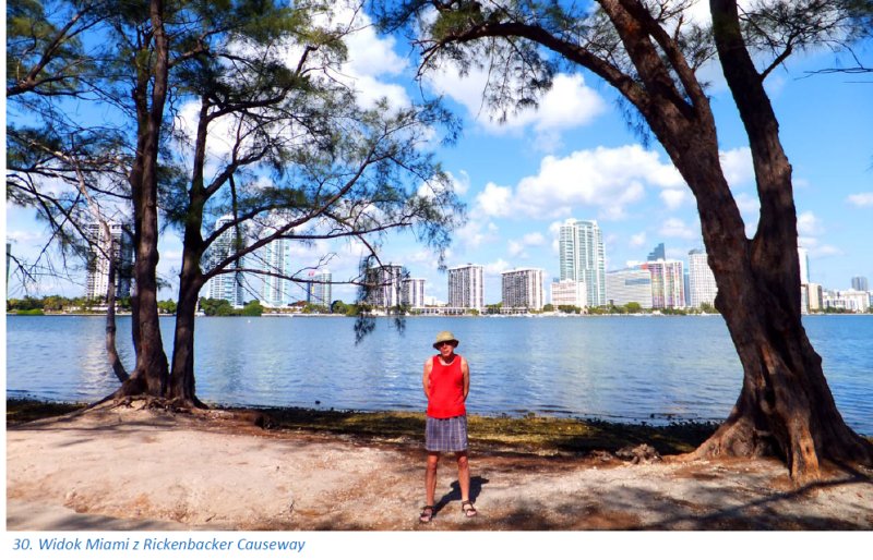 Przejeżdżamy przez park i idziemy spacerkiem aż do cypla z latarnią morską. Wracając zatrzymujemy się na historycznej Rickenbacker Causeway, skąd roztacza się wspaniały, spotykany na wielu ilustracjach i folderach, widok przez zatokę na centrum Miami.