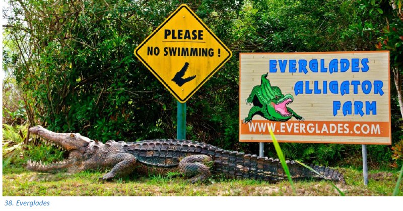Na Florydzie znajduje się duża ilość terenów podmokłych i bagien, zamieszkałych przez mnóstwo aligatorów, krokodyli, węży, żółwi i innych "strasznych" zwierzaków.