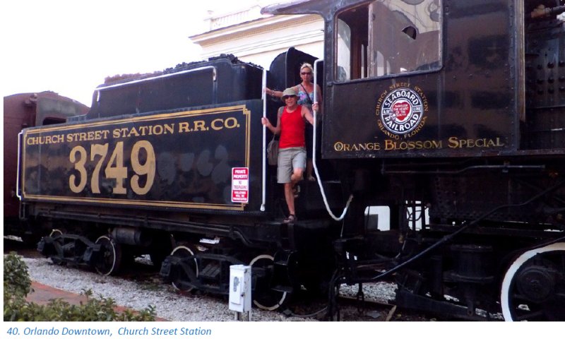 Na Church Street Station wita nas zabytkowa lokomotywa. Ta stacja była początkiem trasy kolejowej, łączącej Orlando z Key West, zbudowanej do 1912 roku, a zniszczonej przez potężny huragan w roku 1935. Nigdy jej już nie odbudowano, a na jej miejscu zbudowano autostradę, która obecnie łączy kontynent z Key West.