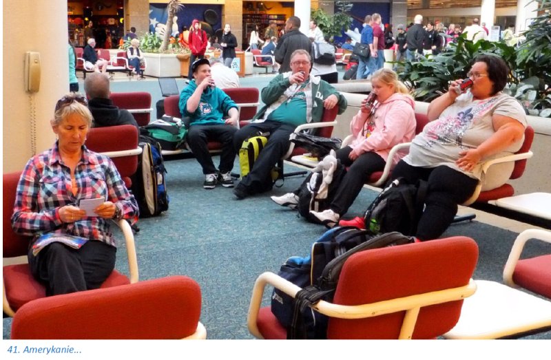 Już myślałem, że nie będę wyciągał aparatu foto, ale okazało się, że chyba nie mam wyjścia... Wg najnowszych badań Amerykanie są najgrubszym narodem świata. Śmieciowe jedzenie i kompletny brak ruchu brutalnie robią swoje. Ta 4-osobowa rodzinka, która siadła obok nas na lotnisku w Orlando, waży łącznie kilkaset kilogramów. Przyjrzyjcie się mamusi... Grażka wygląda przy nich jak anorektyczka !!