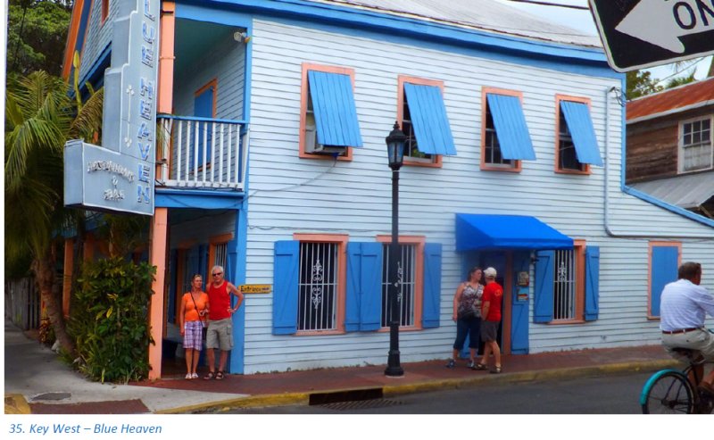 Jednym z ulubionych miejsc Hemingway’a na wyspie był Blue Heaven, wtedy dom publiczny (obecnie kawiarnia), do którego chodził na mecze bokserskie (sic!)