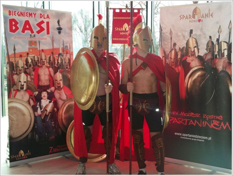Efektowne spartańskie przebrania, które zwracają uwagę zawodników, kibiców i mediów, mają za zadanie skierować wzrok na cel, który przyświeca Spartanom, a mianowicie pomoc niepełnosprawnym dzieciom. Tym razem Spartanie pobiegli dla 11-letniej Basi Bagorro, która na skutek nieszczęśliwego wypadku w drugim roku życia doznała licznych urazów mózgowo-czaszkowych, przestała chodzić, mówić i straciła niemal wszystko, co do czasu wypadku potrafiła.