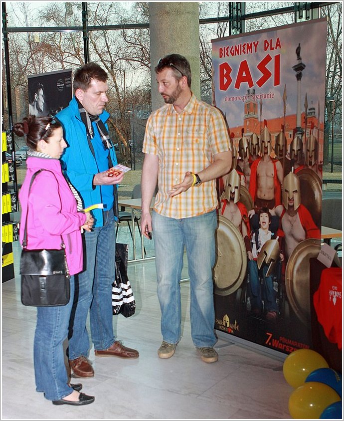"Spartanie! Pragnę Wam podziękować za akcję zorganizowaną dla mojej Córeczki Basi, akcję pod każdym względem profesjonalną, ale przede wszystkim pełną serca i pasji. Poświęciliście dla Basi tak dużo swojego wolnego czasu, a dzisiaj pokonaliście trasę 7 Półmaratonu Warszawskiego. I tylko dla Was nie był istotny czas a idea, dla której biegliście: pomoc Basi, która mimo że sama nie może pobiec, dzięki Wam przekroczyła linię mety! Brak słów, aby wyrazić jak wiele dla niej zrobiliście. To właśnie min. dzięki tak wspaniałym ludziom jak Wy, codzienna walka o Basię staje się łatwiejsza. Dziękuję. Wiadomo, że wsparcie finansowe, które uda się zgromadzić nie zapewni całkowitej rehabilitacji, bo potrzeby Basi są ogromne. Jednak jej radość w sobotę w Expo i dziś... Basia na pewno zapamięta to przeżycie".