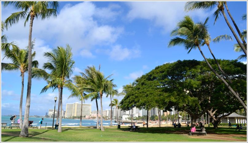 Składa się z 136 wysp, wysepek i atoli. Zamieszkałych jest siedem wysp: Oahu, Hawaii, Maui, Kauai, Molokai, Lanai i Niihau. Przybywam tu w Dzień Św. Mikołaja – 6 grudnia 2012 roku. Ląduję na międzynarodowym lotnisku w Honolulu na wyspie O’ahu. Wszystkich turystów wychodzących z lotniska witają piękne Hawajki słowami Aloha i zakładają każdemu na szyję wieniec z kwiatów.
