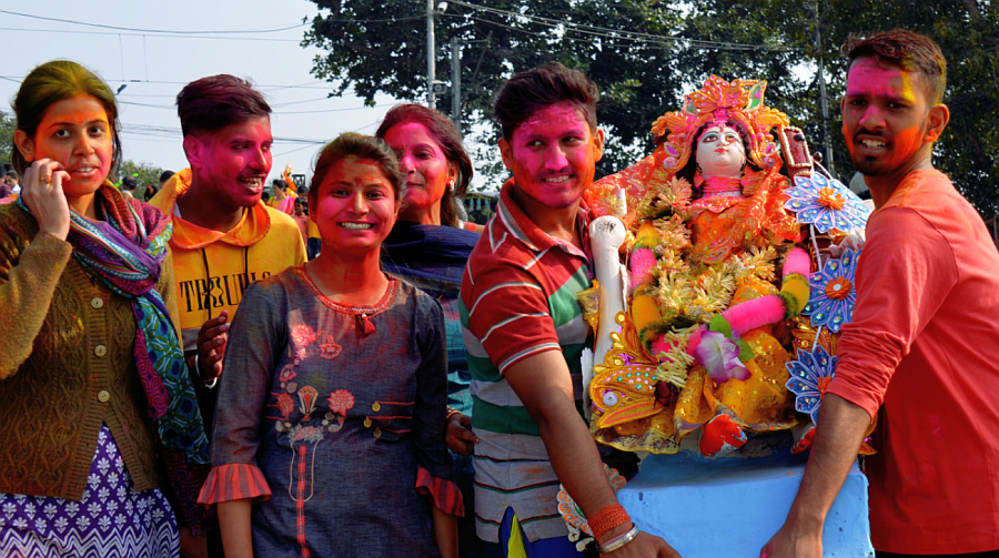 W rzeczywistości jednak to żadna Marzanna. To święto Wasantapańćami – Basant Panchami lub Śri Pańćami – wiosenne święto związane z kultem Saraswati – bogini nauki, sztuki i muzyki. Jednej z trzech bogiń, równoważących siły trzech bogów męskich: Brahmy, Wiszny i Sziwy. Sami widzicie że zgubić się można już przy samym wyliczaniu. Nie to co Bóg Ojciec, Syn Boży, Duch Święty i Matka Boska posiadająca tysiąc drugich imion.