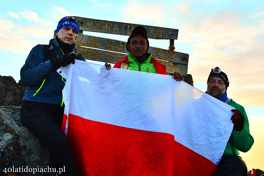 Wchodziliśmy na Mount Meru we dwóch. Ale nasz zespół towarzyszący liczył aż sześć dodatkowych osób: parkowego strażnika ze strzelbą, przewodnika, kucharza i trzech tragarzy. Nie obyło się bez typowych dla Afryki – i wesołych – zdarzeń, gdy np. okazywało się po dniu wędrówki że nasza grupa się powiększa. Jeden z tragarzy zabrał ze sobą siostrę, która niosła kucharzowi garnki. Drugiego dnia okazało się, że mamy także kelnera który podaje nam zupę. Myśleliśmy, że to nasz kucharz a okazało się, że to nowy członek wyprawy który dołączył do niej nawet nie wiemy kiedy. Z własnej inicjatywy znalazł sobie u nas pracę. Oto Afryka – każdy chce jakoś zarobić 🙂