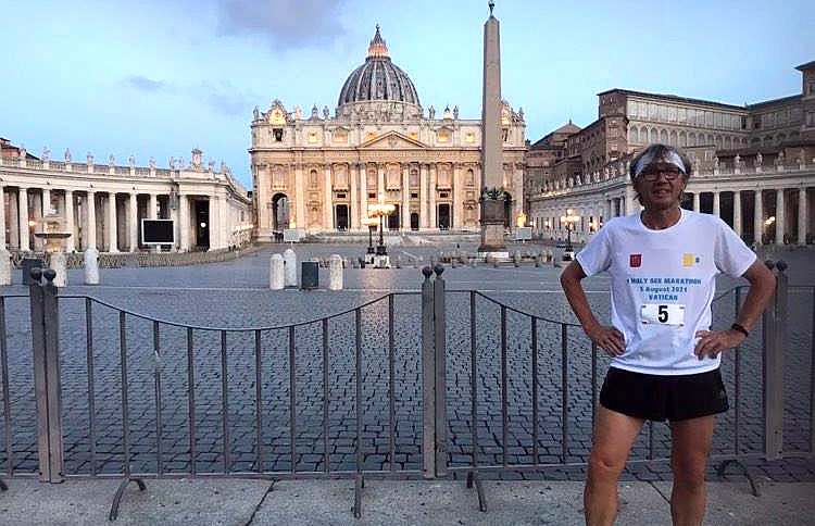 Trasa organizowanego od 1982 roku maratonu rzymskiego prowadzi przez teren Watykanu – a dokładniej przebiega u podnóża Placu św. Piotra i oferuje widok na Bazylikę św. Piotra – ale jest to tylko odcinek długości 300 metrów, i trudno uznać takie rozwiązanie za satysfakcjonujące. Teoretycznie można byłoby wyznaczyć kilkusetmetrowej długości pętlę na terenie watykańskich ogrodów… ale to tylko teoria, która raczej nigdy nie zostanie zrealizowana. Można także pobiec maraton na elektrycznej bieżni w siłowni w Watykanie, jednak… najpierw trzeba byłoby się tam dostać. Dobrego rozwiązania jak widać nie ma.