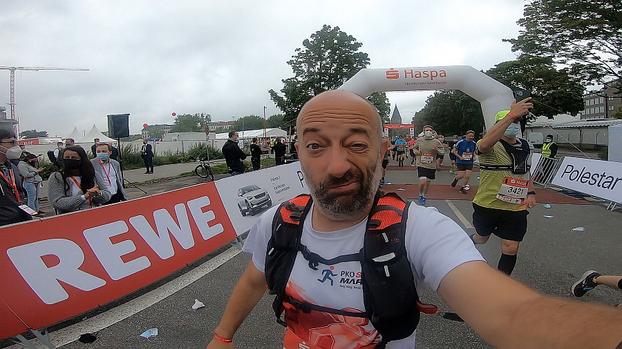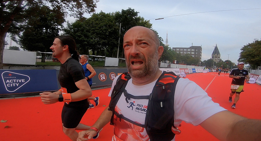 Zanim opowiem o efektach biegania bez kamery, kilka słów o samym maratonie. Po pierwsze: zeszłoroczny maraton w Hamburgu nie odbył się. Z jakiej przyczyny? Zgadnijcie! Po drugie impreza ta należy do jednych z największych i najlepiej zorganizowanych biegów tej klasy w Niemczech: jest wprawdzie poza pierwszą trójką, ale w pierwszej dziesiątce. W roku 2019 finiszowało tutaj ponad 10 tysięcy maratończyków (dokładnie: 10.101 finiszerów) oraz trzy tysiące półmaratończyków. Organizatorzy w tym roku bardzo starali się zorganizować imprezę - walcząc z tymi samymi problemami co organizatorzy w wielu innych krajach, w tym i w Polsce. Ostatecznie udało się dopuścić do startu wyłącznie osoby posiadające szczepienia i stosowne certyfikaty medyczne. Efekt? Metę osiągnęło 1978 maratończyków i 818 półmaratończyków. To mniej więcej 1/5 liczby biegaczy sprzed dwóch lat, co w kontekście spadków frekwencji na biegach w Polsce pozostawiam Wam do samodzielnej oceny.