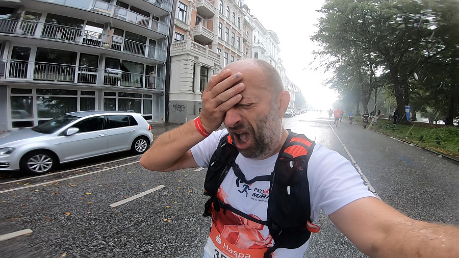 Prawie się udało, gdyż kamerę włączyłem tylko raz podczas przelotnego deszczu (który przy okazji przemoczył mikrofon teoretycznie wodoszczelnej GoPro). A z wygłupów nie miałem serca odpuścić tylko jednego - przybijania "piątek" zgromadzonym na trasie kibicowskim maluszkom. Poza tymi dwoma wyjątkami na całej trasie maratonu zachowywałem się jak przedstawiciel klasy wyższej biegaczy - jak prawdziwy ścigacz: koncentracja jakby od tego zależało moje życie :-)