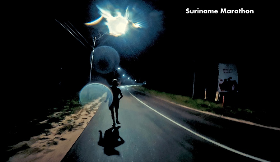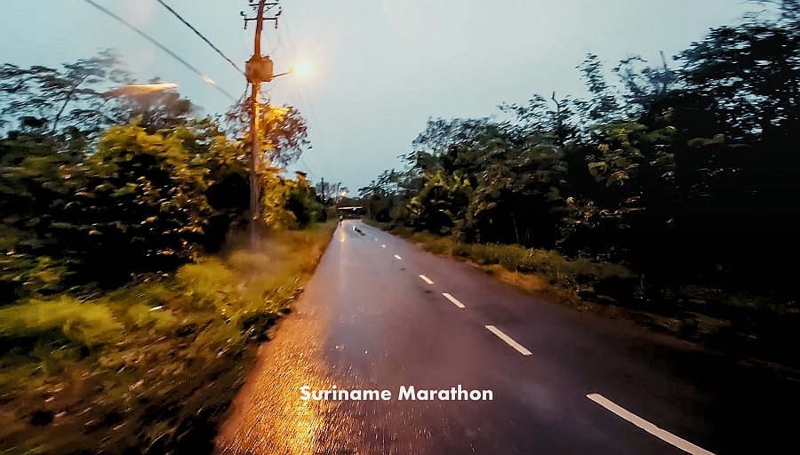 Surinam jest krajem, w którym ponad 90 procent powierzchni zajmuje dżungla w jej najgorszym wydaniu: dzicz nad dziczą, posypany wilgocią i zagrabiony monsunowymi deszczami pierwotny las. Ze względu na okoliczności atmosferyczne start maratonu wyznaczono na środek nocy, a konkretnie na godzinę 03:30. Tutejsze ciemności towarzyszyły nam przez większość dystansu, rozwidniło się dopiero w okolicach godziny siódmej rano.