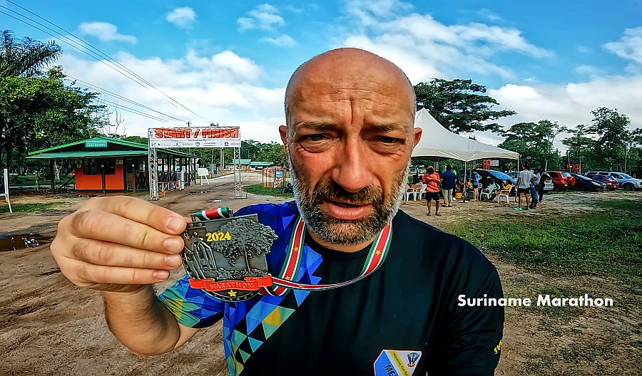 Pięć godzin i szesnaście minut po starcie stałem się właścicielem pięknego medalu, wyjątkowego - gdyż tylko nieco ponad trzydzieści osób na całym świecie może pochwalić się pokonaniem maratonu w Surinamie. Czy i Wy będziecie mieli kiedyś taką szansę? Trudno powiedzieć, zorganizowana przez Wojtka impreza na pewno nie będzie cykliczna. Może zasialiśmy wśród mieszkańców tego kraju wirusa biegania... ale raczej nam się to nie udało. Całe szczęście pozostał film, do którego obejrzenia gorąco Was zapraszam.