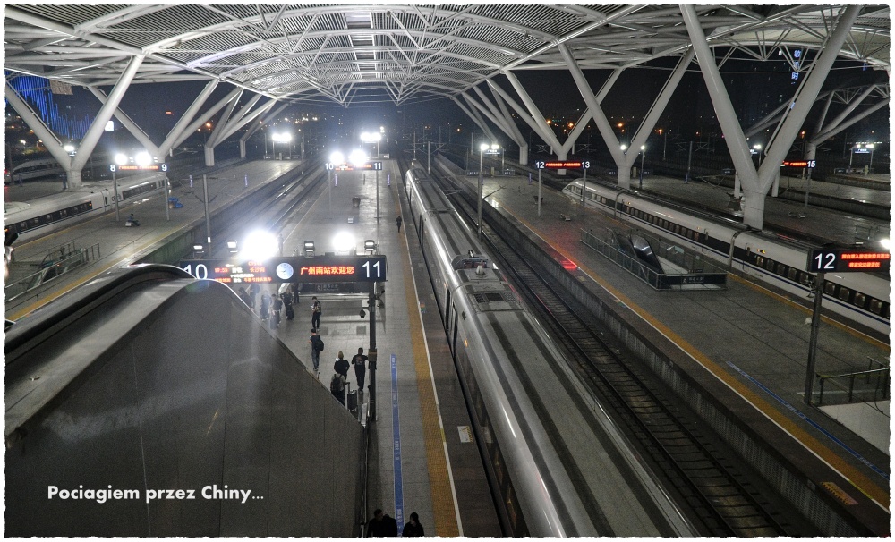 Pociągi w Chinach nie dość, że zatrzymują się z dokładnością do kilku centymetrów, to jeszcze jeżdżą z dokładnością do kilku sekund. Perony są doskonale oznaczone, więc od samego początku wiadomo w którym miejscu należy stanąć. Nie ma więc tak dobrze nam znanego panikarskiego biegania przez cały peron w poszukiwaniu odpowiedniego wagonu; tutaj wszystko jest idealnie zaplanowane. Nie jest to wydumana ekstrawagancja, lecz systemowa potrzeba – pociągi pasażerskie mają po pół kilometra długości, więc pasażer musi z góry wiedzieć, którą bramką wejść na peron by stanąć przy swoim wagonie . Śmieszne głosy płynące z megafonów nie robią w Chinach niespodzianki twierdząc, że wagon nr 16 będzie znajdował się wyjątkowo na początku składu, a nie na jego końcu.