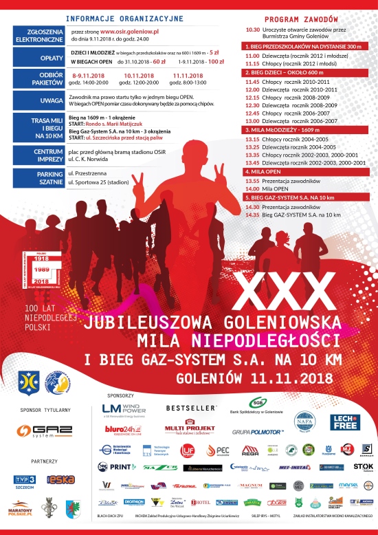 OPŁATY STARTOWE: XXX Goleniowska Mila Niepodległosci