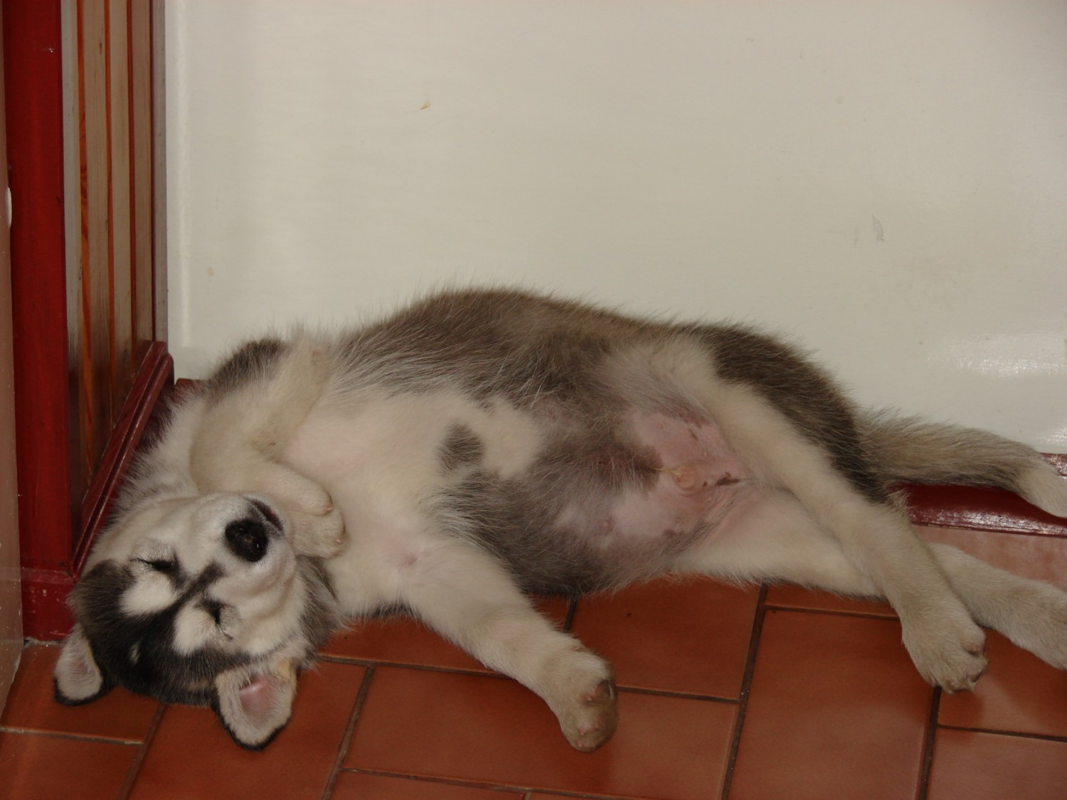 | To dopiero wygodne leżenie...nigdy bym nie przypuszczała, że psy mog± tak spać :-)