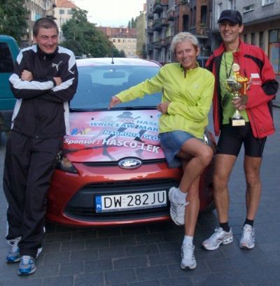 Po maratonie w Lęborku (tam byłem jako kibic) Marysia z Darkiem zaczęli mnie namawiać na maraton we Wrocławiu. Zacząłem się bronić i sprzeciwiać takiemu pomysłowi, mówiłem, że żadnego maratonu w tym roku!!! Ale Oni nie ustępowali i w końcu uległem namowom. Jak się okazało warto było Ich posłuchać (słuchać starszych i mądrzejszych) !!!