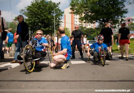 Dwa dni przed zawodami otrzymałem telefon od osoby, która zapytała się czy może uczestniczyć w Biegu startując na handbike-u. Znając trasę próbowałem odwieść ją od tego pomysłu. Rozżalona, odłożyła słuchawkę...