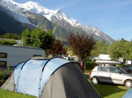 Po drodze stajemy w Szwajcarii nad Jeziorem Genewskim, piękny widok - w oddali ciągną stateczki spacerowe, horyzont jeziora zlewa się z niebem. Już w Chamonix wybieramy camping: pierwszy za daleko od miasta, drugi L’Ile des Barrats wygląda świetnie i jest jeszcze wolne miejsce na 2 namioty i 2 auta. No i jest widok na Białą Górę!